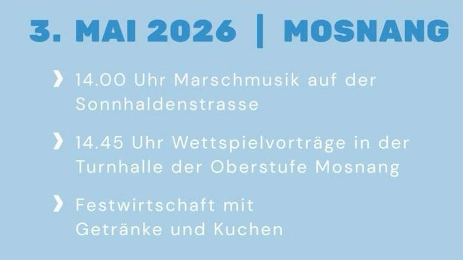Vorbereitungskonzert EMF am 3. Mai ab 14.00 Uhr, mit Festwirtschaft.
